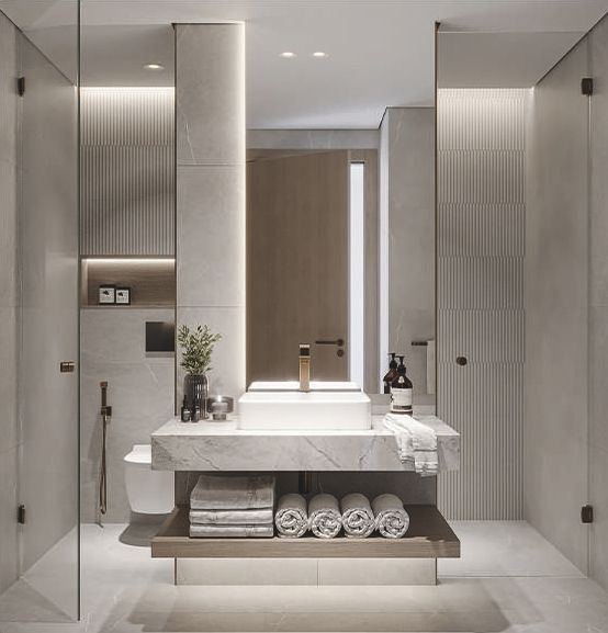 Marrying function and style, every detail from the sleek fittings, to the attractive fixtures, mirrors and the countertops in the bathroom has been designed to perfection.