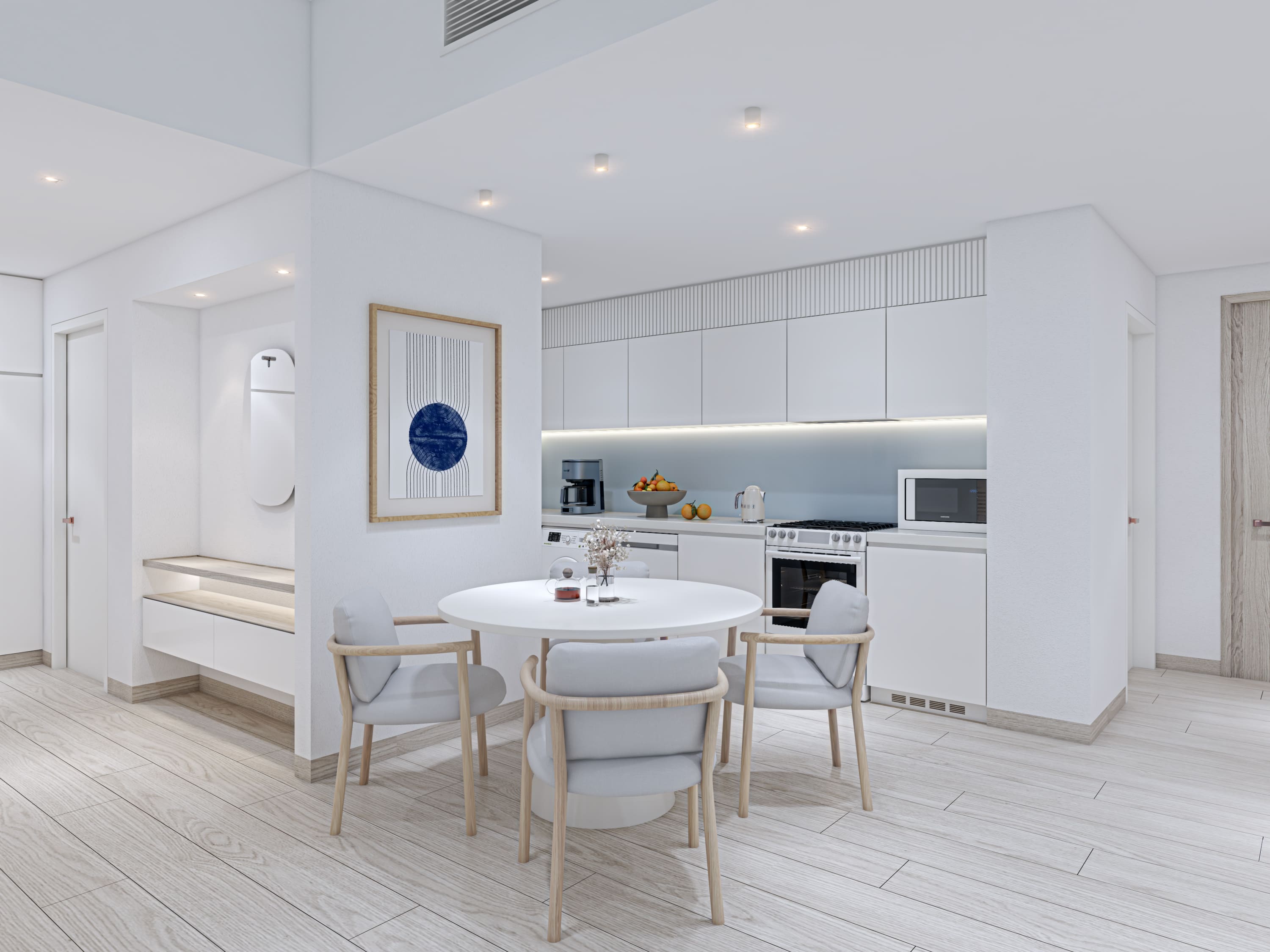 Сarefully integrated eco-conscious features into every aspect of design, ensuring a harmonious coexistence with the environment. From using locally sourced materials, to energy efficient lighting and water management features, from 12EV charging stations to ensuring ample natural light with full height windows; design principles reflect commitment to sustainability while delivering an immersive, vibrant lifestyle.