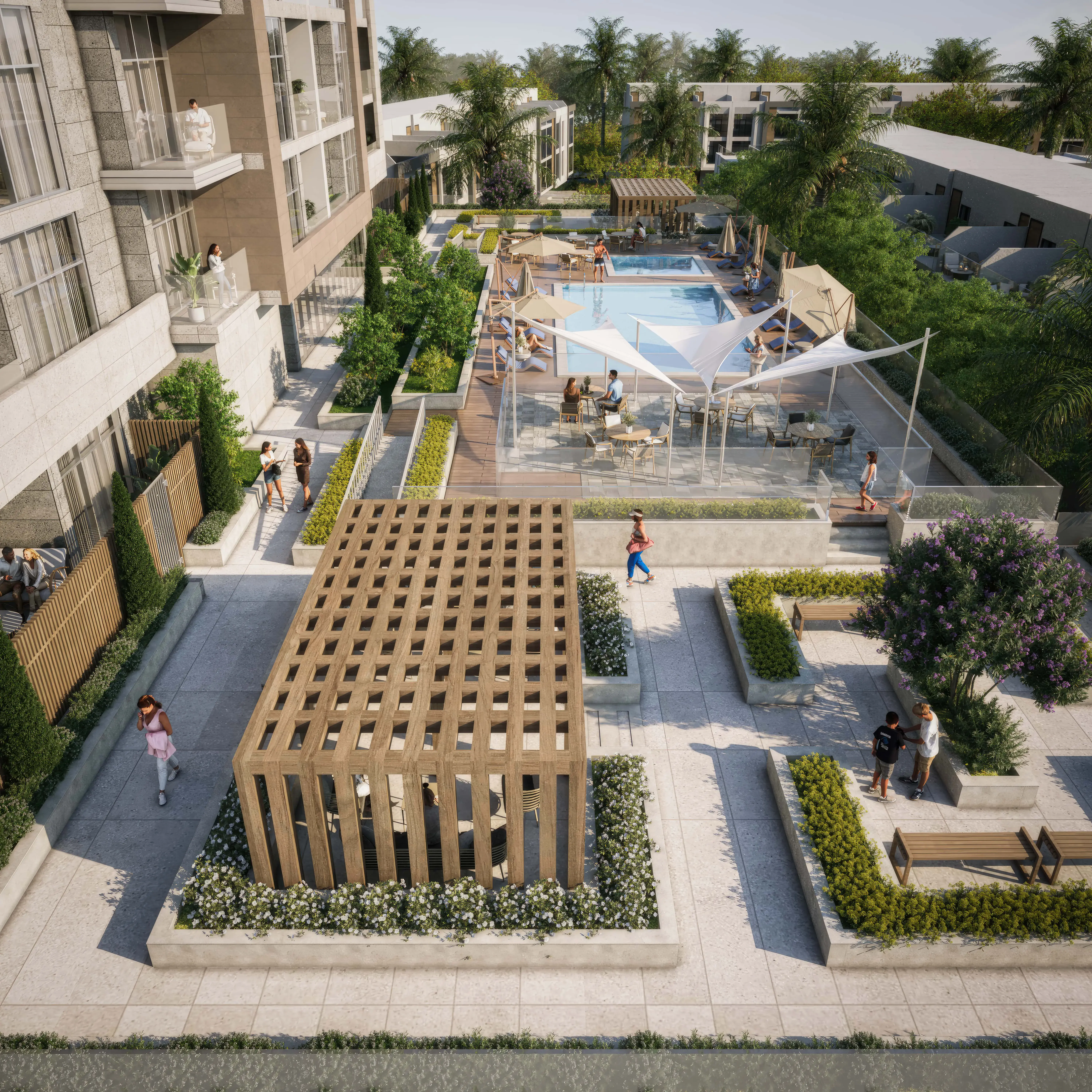 The project offers a refined selection of Studios, 1BR and 2BR residences, as well as spacious 2BR, 3BR and 4BR townhouses, each crafted to elevate everyday living. Bright interiors, expansive balconies, private outdoor areas, and double-height living rooms in select townhouses create a fluid indoor–outdoor lifestyle defined by contemporary lines and a sophisticated aesthetic.