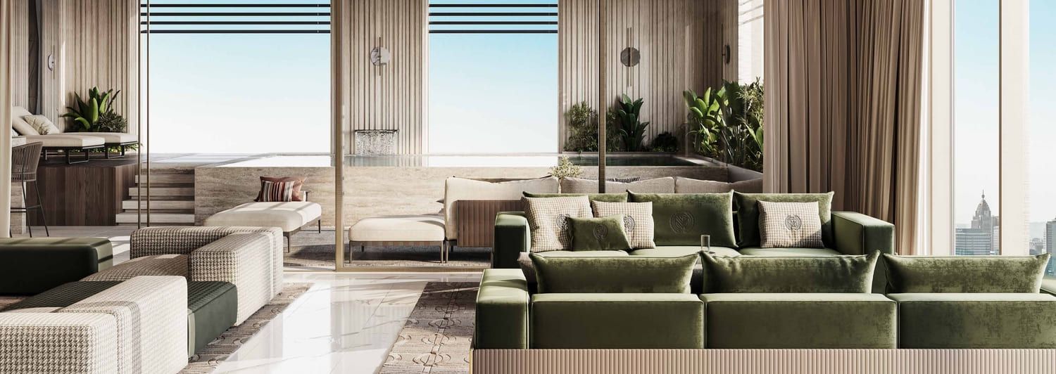Elevating the concept of luxury living, the tower offers a host of amenities designed for the discerning few. From a sophisticated cigar lounge to a rejuvenating spa, a kid's play area, and padel tennis, every facet of life is catered. Residents can indulge in cinematic experiences, relax in the sauna, or avail themselves of premium laundry services. The tower's commitment to an elite lifestyle extends to 24/7 valet services, a private chef, and a state-of-the-art gym, ensuring a truly unmatched living experience.