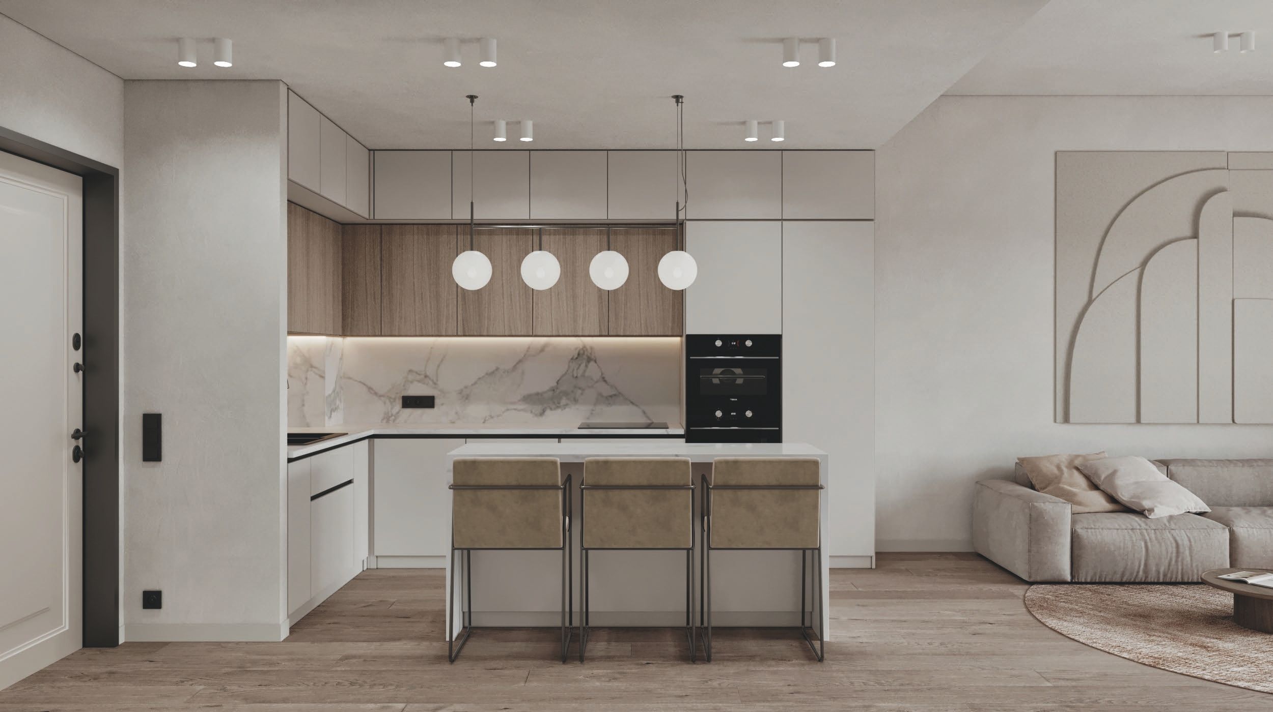 Fully equipped modern European kitchen.