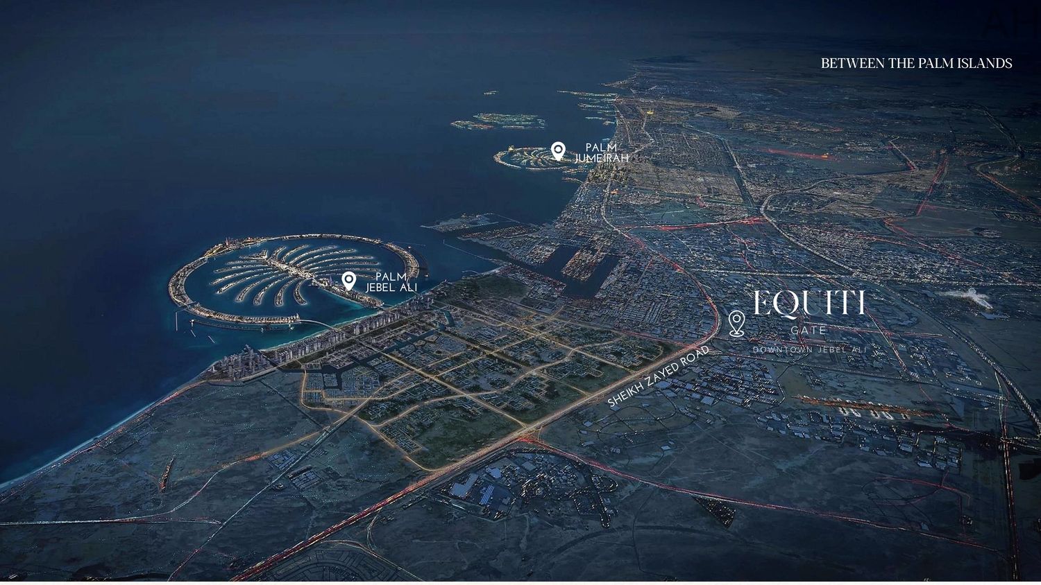 Welcome to Equiti Gate, a visionary development by Refine Development, strategically positioned on Sheikh Zayed Road in the heart of Downtown Jebel Ali. This prime location places you just a mere 10-minute drive away from the highly anticipated Palm Jebel Ali.