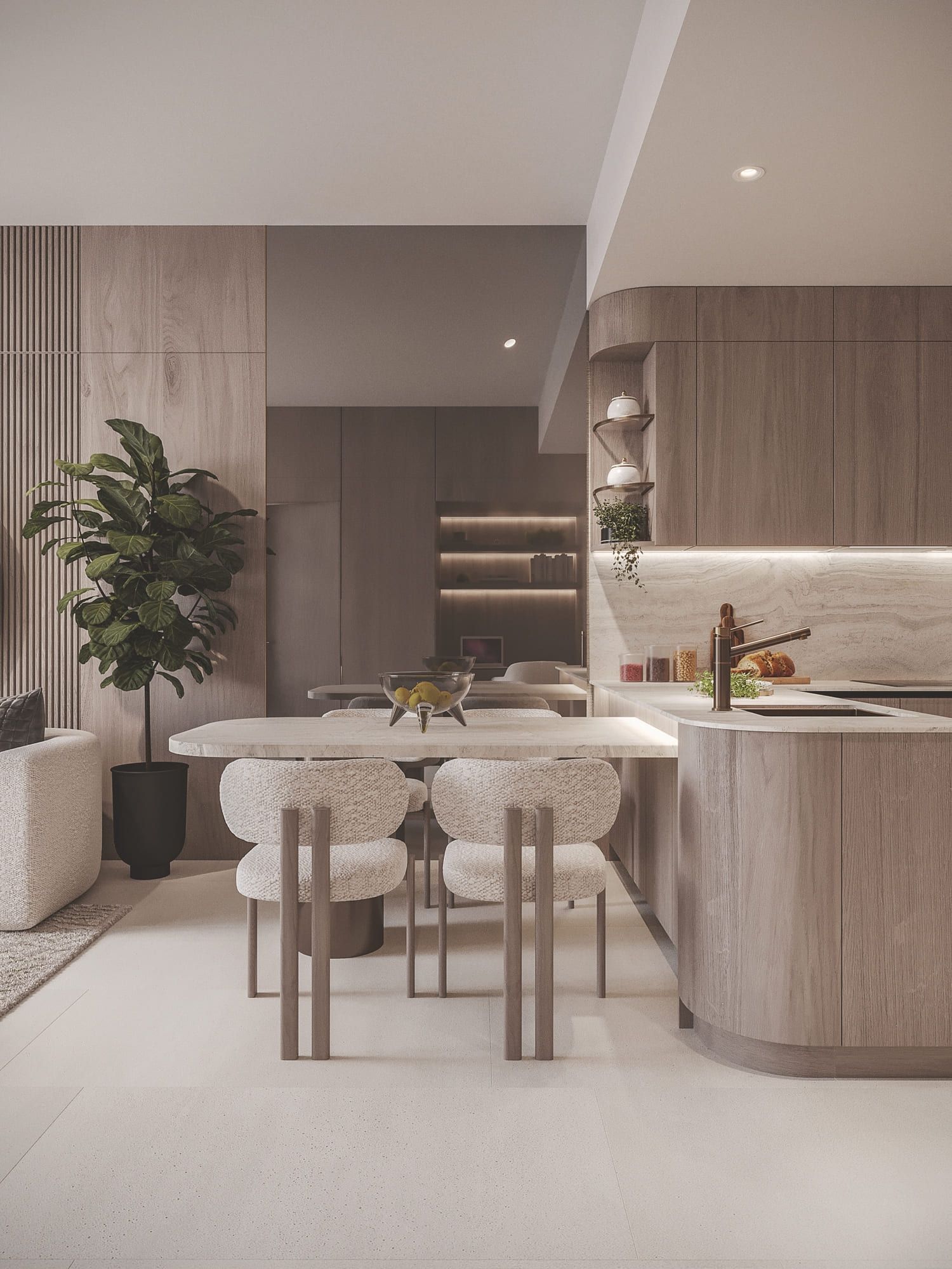 Clean lines, smart storage solutions, and a neutral color palette create an open and inviting space. Furniture and tasteful decor accents complete the design.