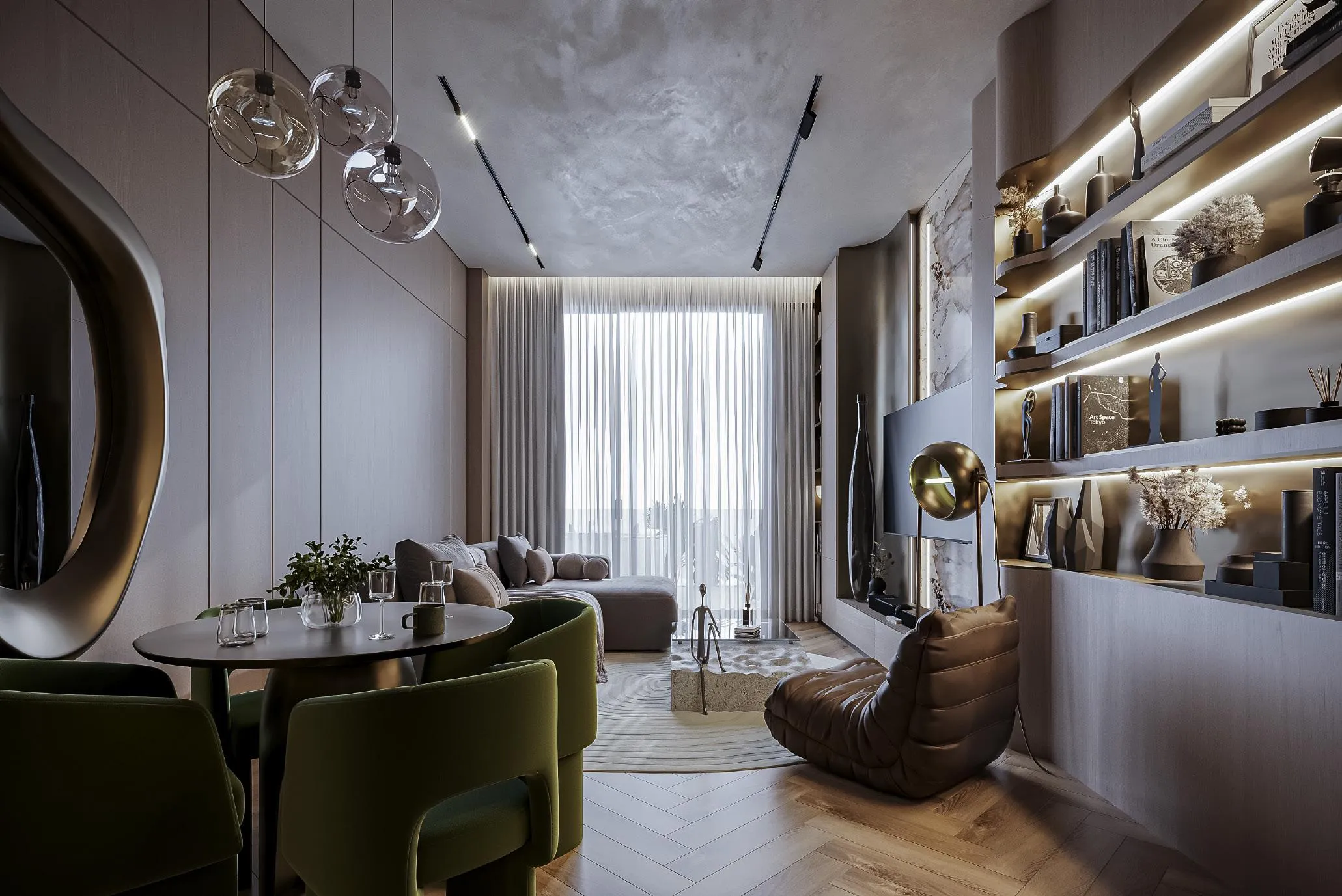 Inside, Sky Line offers refined residences where elegant design meets functional sophistication. Warm textures, soft color palettes, and high-end contemporary detailing create a calm and inviting atmosphere. Spacious layouts, floor-to-ceiling windows, and thoughtful lighting enhance the feeling of openness, while premium craftsmanship elevates every corner of the home. Each residence is designed to embody comfort, beauty, and effortless modern living.