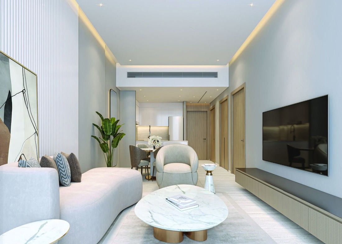 At the core of the development lies the stunning central swimming pool, a serene oasis surrounded by lush landscaping. This inviting retreat offers crystal-clear waters, ample lounging areas, and a peaceful ambiance, ideal for relaxation or leisure. Complemented by a welcoming lobby with high ceilings, refined interiors, and inviting seating, the communal spaces reflect an understated sophistication that sets the tone for life in Guzel Towers.