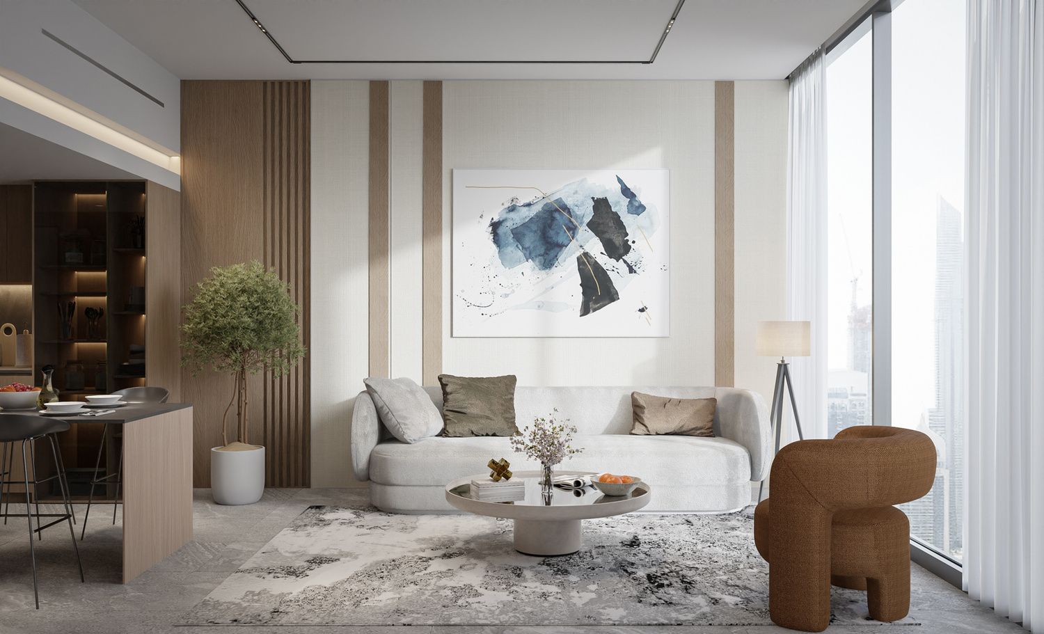 In Beverly Gardens, exquisite natural materials adorn the interiors, casting a captivating radiance. Soft, warm light imbues tranquility and elegance. Gentle lines and subtle tones create a seamless blend, enveloping residents in sophistication. From dawn's glow to sunset's hues, Beverly Garden's interiors exude timeless allure, captivating all with ethereal beauty