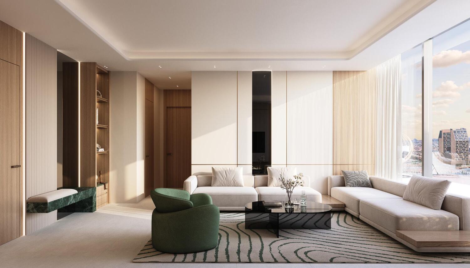 Inside, each residence is crafted to evoke an atmosphere of refined modernity, with interiors that balance elegance and comfort. Spacious layouts, thoughtful lighting, and contemporary design elements come together to create a warm and inviting ambiance. Every detail is curated to offer a sophisticated living experience that aligns with Binghatti’s reputation for architectural artistry.