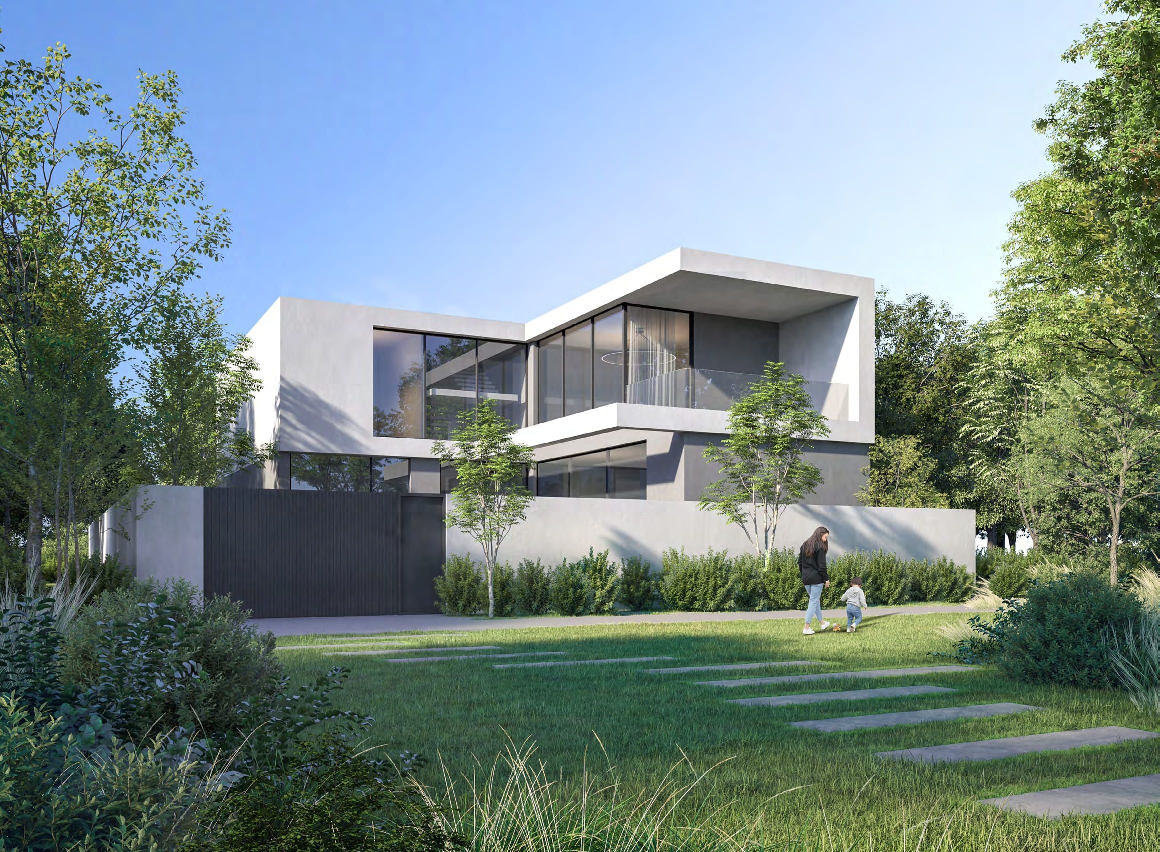 Forest Signature Villa Saro с 5 спальнями. Безупречный и просторный дом с лифтом, садом, бассейном, террасой, балконом, крытой парковкой, гостиной и столовой зоной, маджлисом, семейной комнатой, прачечной, кладовой (pantry), складским помещением, гостевым санузлом, спальней и ванной комнатой для прислуги, спальней и ванной комнатой для водителя, а также приватным мастер-сьютом на верхнем этаже.