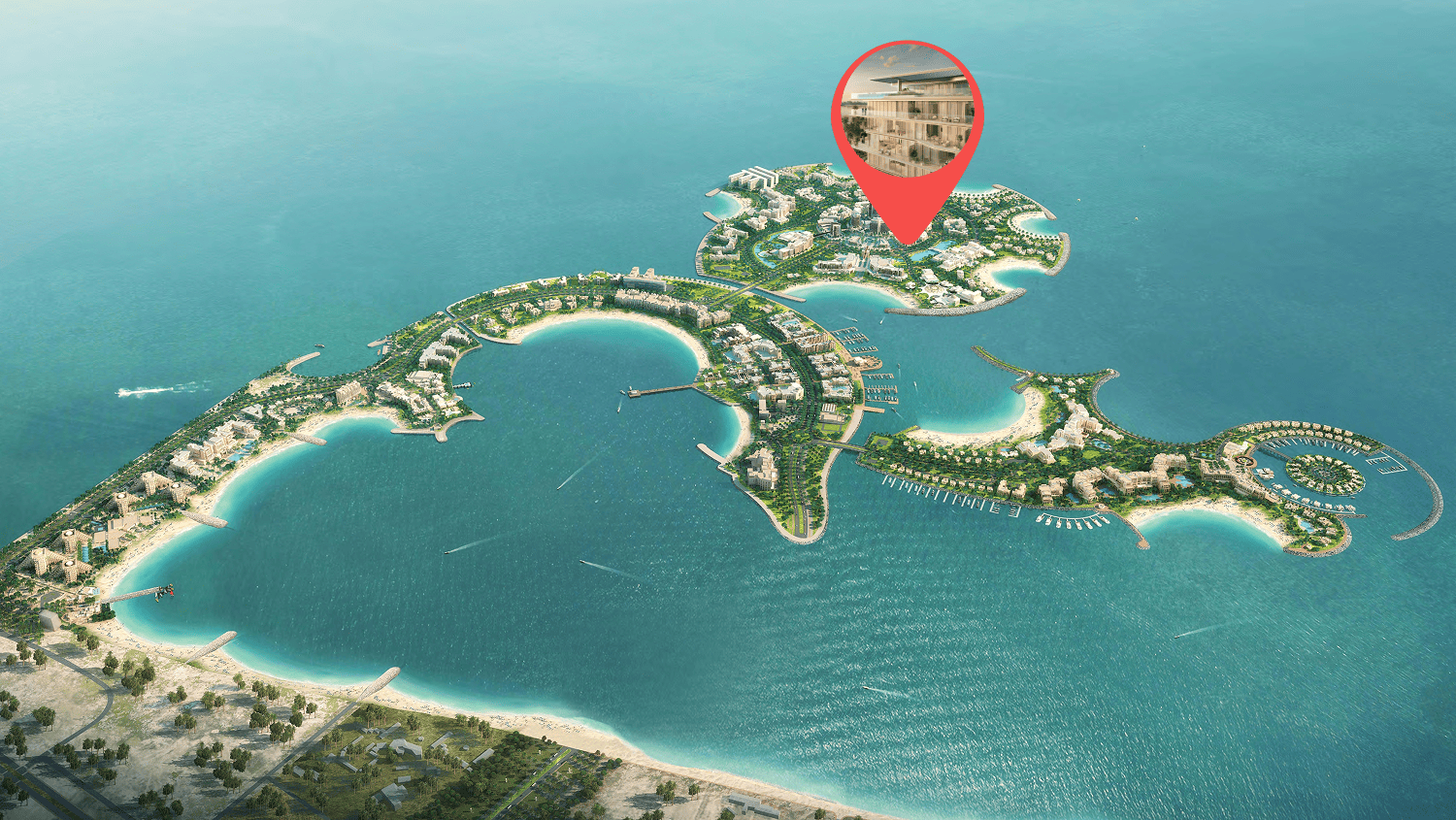 Al Marjan Island is a stunning man-made archipelago located in the emirate of Ras Al Khaimah. It is one of the most prominent tourist destinations in the region, known for its picturesque beaches, luxurious resorts, and upscale residential developments. Al Marjan Island is situated along the Arabian Gulf coastline and offers breathtaking views of the sea. The island is shaped like a coral reef and is made up of four primary coral-shaped islands, connected by a central boulevard.