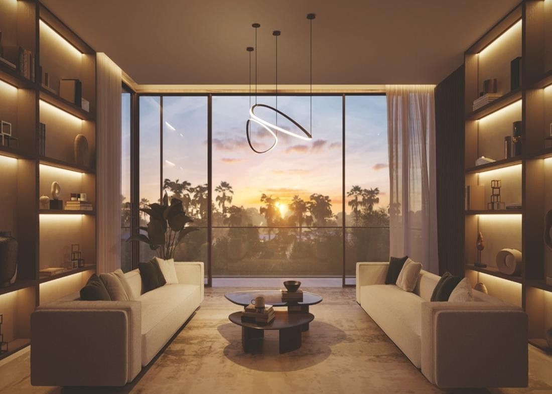 The collaboration of Woods Bagot, Mustard & Linen in crafting the interiors results in a captivating concept that elevates the living space. The opulent architectural craftsmanship, along with carefully positioned windows and balconies, contributes to a thoughtfully designed and aesthetically pleasing facade. This avant-garde development aspires to achieve Estidama 3 Pearl rating, Fitwel, and LEED Gold Certification, setting a benchmark for sustainability.