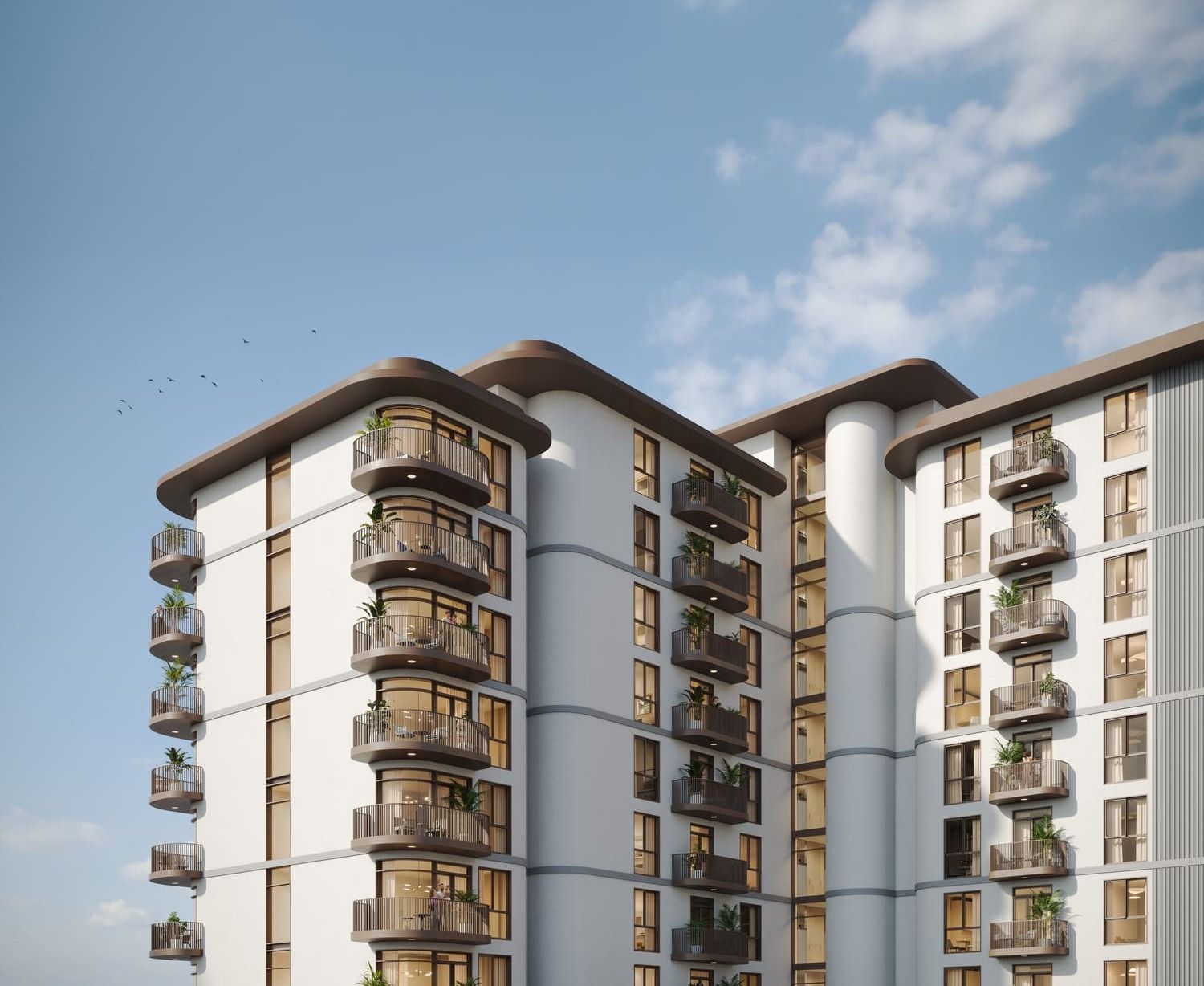 Modern finishing with high-quality materials. Bedrooms feature glazed porcelain floors and built-in wardrobes, with master bedrooms including en-suite bathrooms.