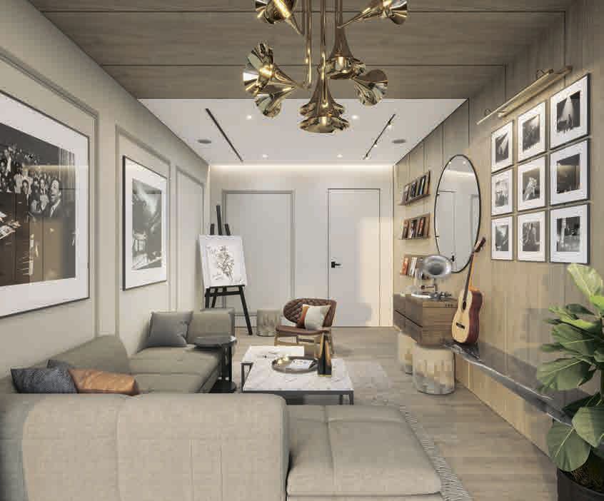 The bedroom: crafted using wood look tile floors and high-quality natural materials. The space is also rich with a delicate and neutral color palette, while the full-length wardrobes provide ample hanging, drawer, and shelf spaces.    The living room: the open-concept elements and the sleek floor tiles and walls add a modern flair to the space and enhance the overall room in an aesthetically organized way.