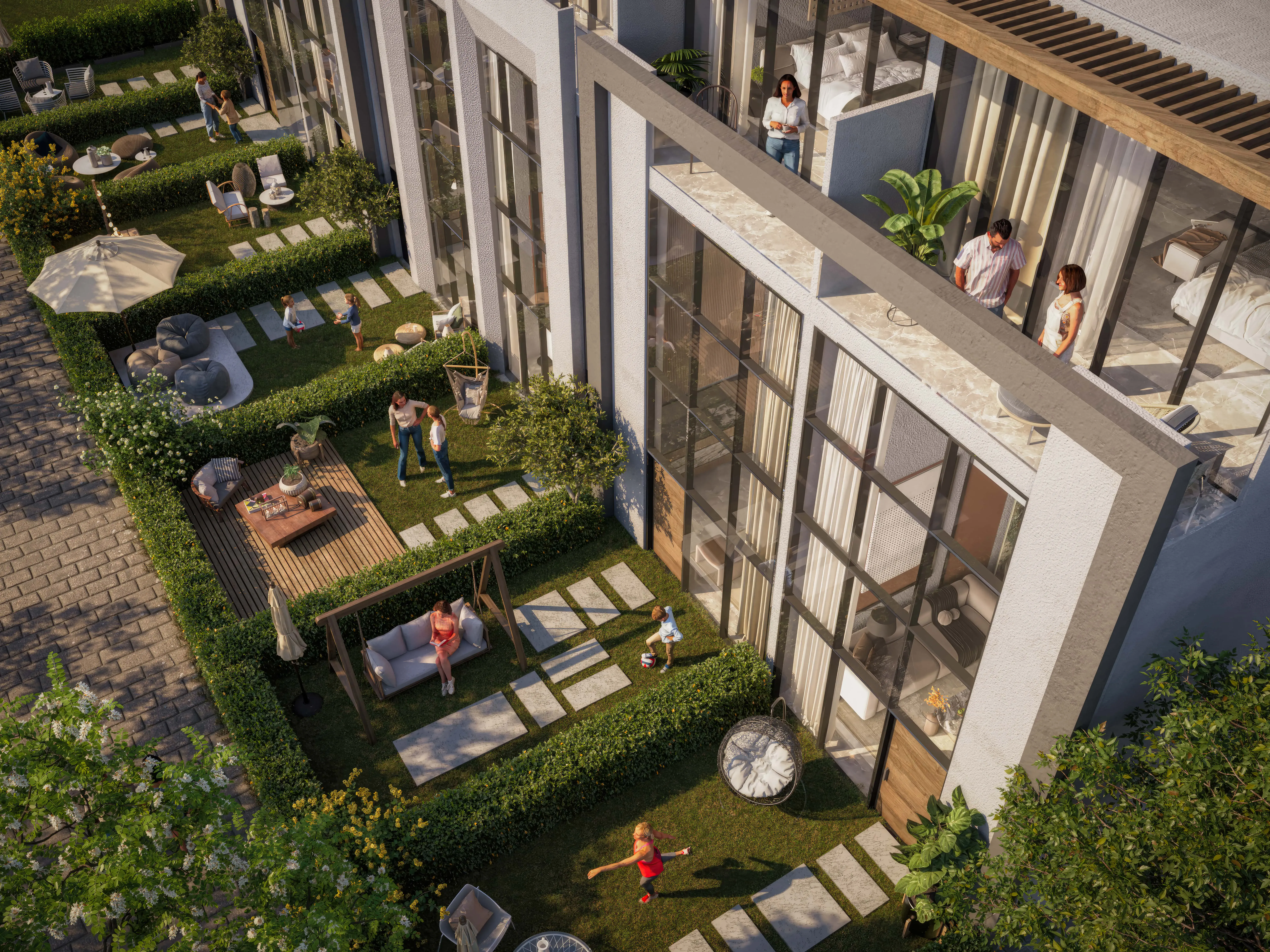 The project offers a refined selection of Studios, 1BR and 2BR residences, as well as spacious 2BR, 3BR and 4BR townhouses, each crafted to elevate everyday living. Bright interiors, expansive balconies, private outdoor areas, and double-height living rooms in select townhouses create a fluid indoor–outdoor lifestyle defined by contemporary lines and a sophisticated aesthetic.