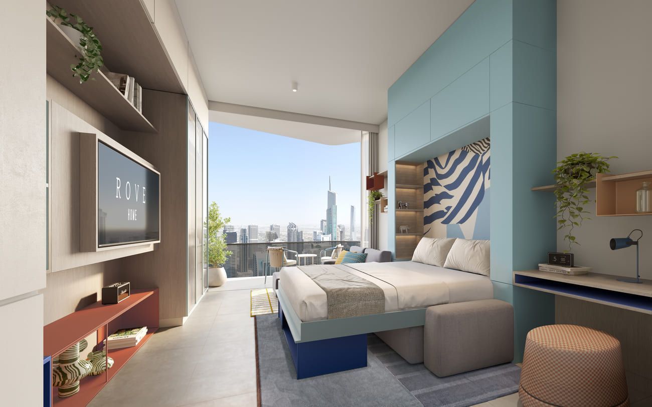 Rove Home's modern design comes to life with inviting interiors designed by Zebra, highlighted by artistic accents from Studio Feel, all inspired by Marina's waterfront vibe to create welcoming spaces that promote a healthy and wellness-focused lifestyle. With floor - to - ceiling windows, smart home features and a panoramic balcony offering stunning views, the apartments provide the perfect blend of style and convenience.