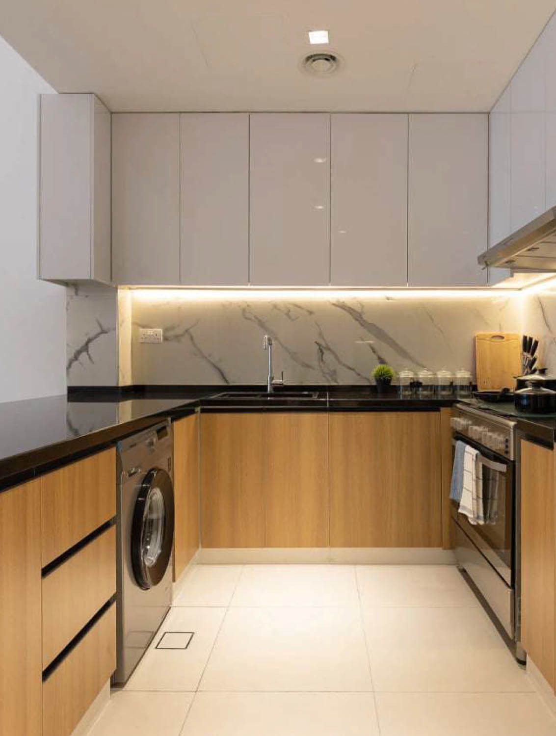 The kitchens are equipped with Samsung's premium range of appliances, including a gas stove, oven, 460L fridge, and a convenient 7KG washing machine. These high-quality appliances are thoughtfully placed within the kitchen for residents' convenience and efficiency in their daily routines.