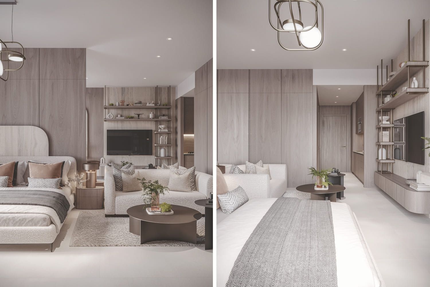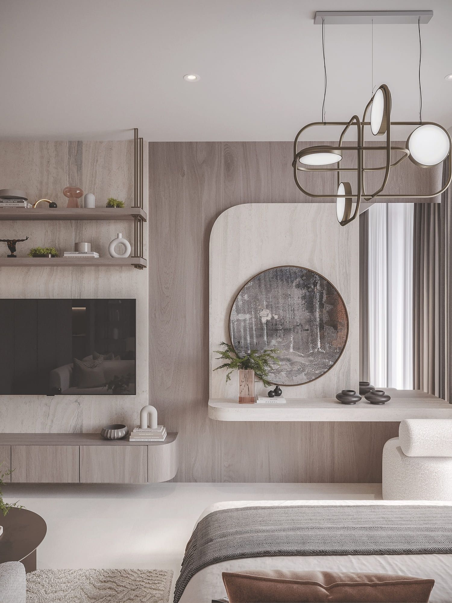 Clean lines, smart storage solutions, and a neutral color palette create an open and inviting space. Furniture and tasteful decor accents complete the design.